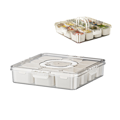 Raybin rõ ràng phục vụ khay gia vị container snackle lưu trữ hộp Snack hộp container chia phục vụ khay với nắp và xử lý