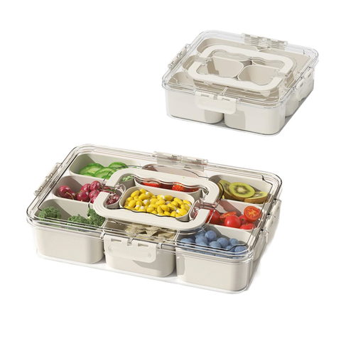 Mới Xách Tay 2 4 8 Ngăn Rõ Ràng Nhựa Snack Hộp Container Snackle Lưu Trữ Hộp Chia Phục Vụ Khay Với Nắp Và Xử Lý