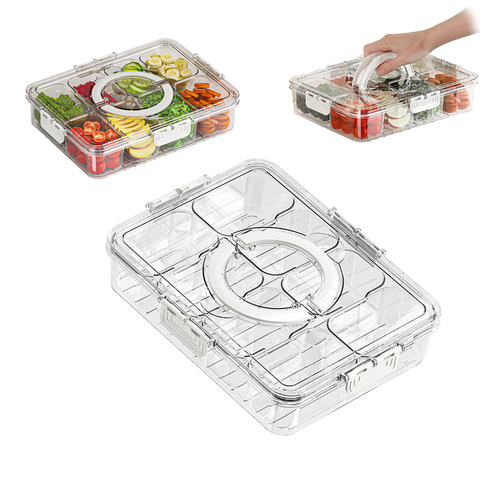 Stackable xách tay 8 ngăn nhựa rõ ràng Snack hộp container snackle Hộp chia phục vụ khay với nắp và xử lý